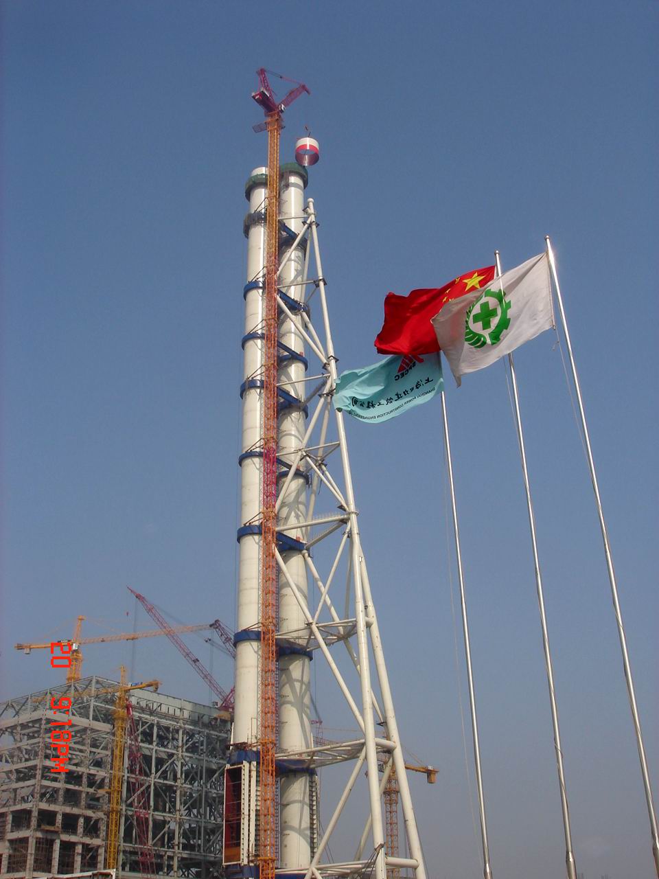 華能金陵電廠1000MW機組國內首座240米自立式全鋼結構雙筒煙囪